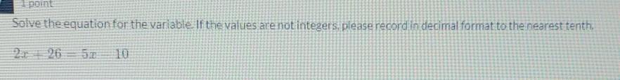 solve the equation for the variable. If the values are not integers, please record in decimal format to the nearest tenth.​