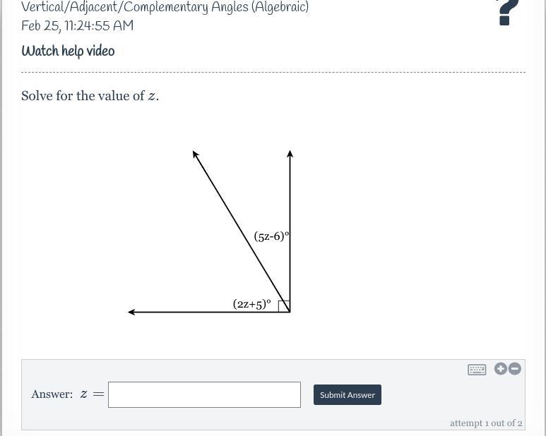 2z + 5° + 5z - 6° = 90° { being complementary angles }
