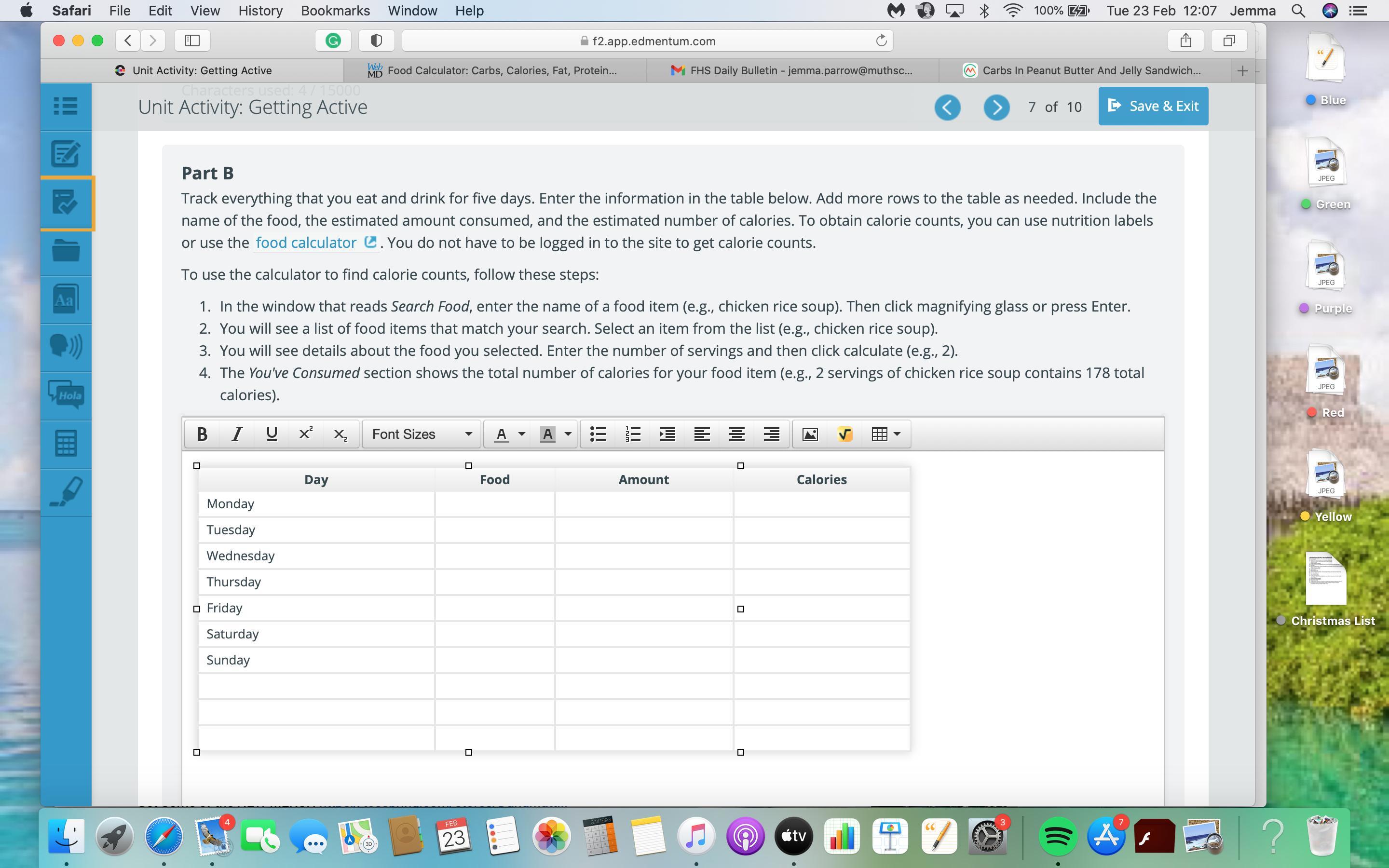 Here you just track your food for the day. I'll give you some examples