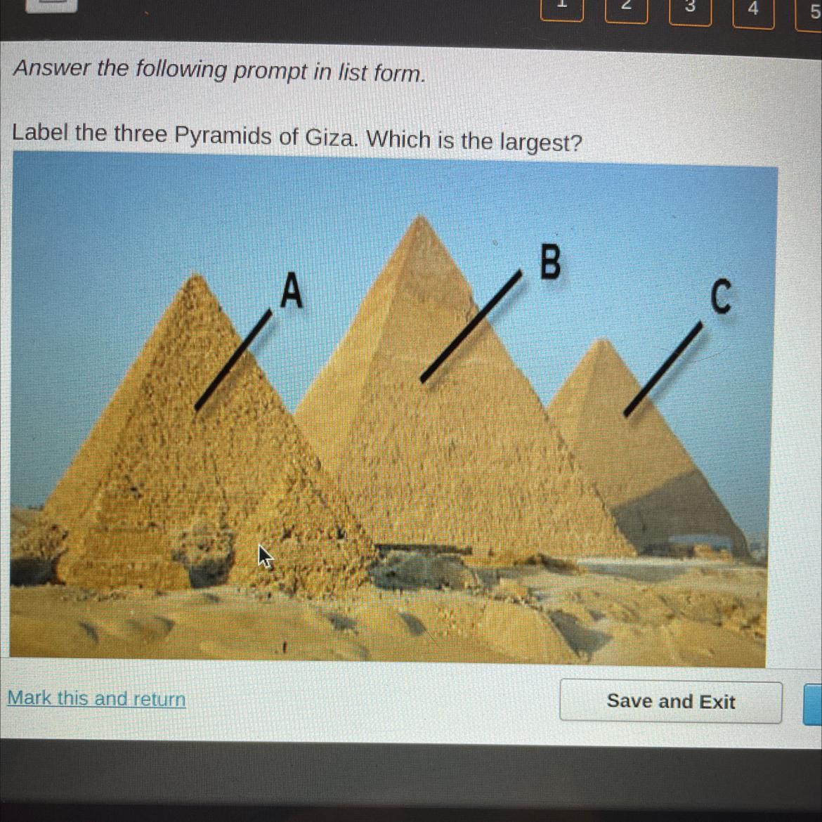 In order from a to c: Menkaure Pyramid, khafre Pyramid, Khufu Pyramid.