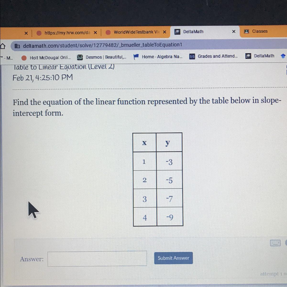 y= -2x - 1