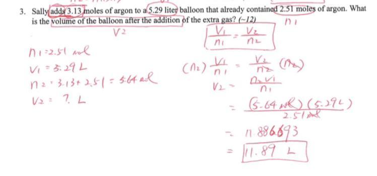 Sally adds 3.13 moles of argon to a 5.29 liter balloon that already contained 4.21 moles of argonWhat is the volume of the ballo