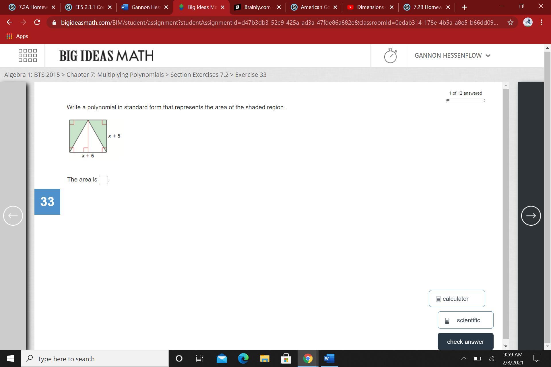 Area Rectangle = (x + 5)(x + 6)
