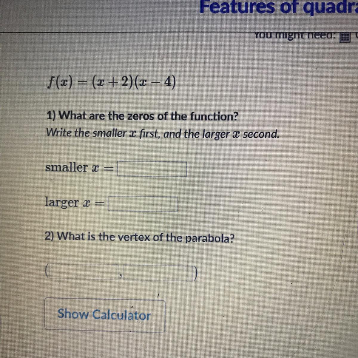 The zeros of a function are when the function equals 0.