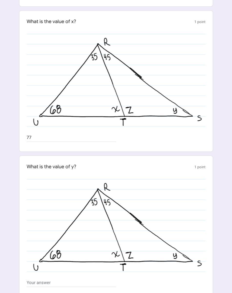 z=103 by the exterior angle theorem