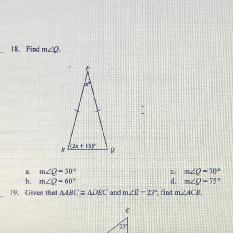 ∠Q = 2x + 15 = (2 × 30) + 15 = 60 + 15 = 75°