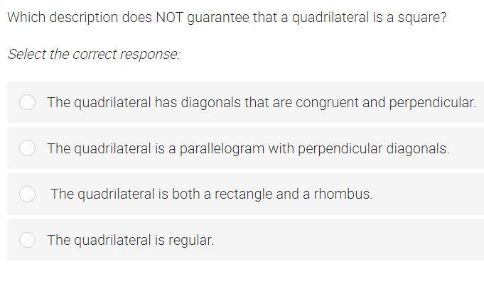 <u>4. "The quadrilateral is regular"</u> does NOT guarantee that a quadrilateral is a square.