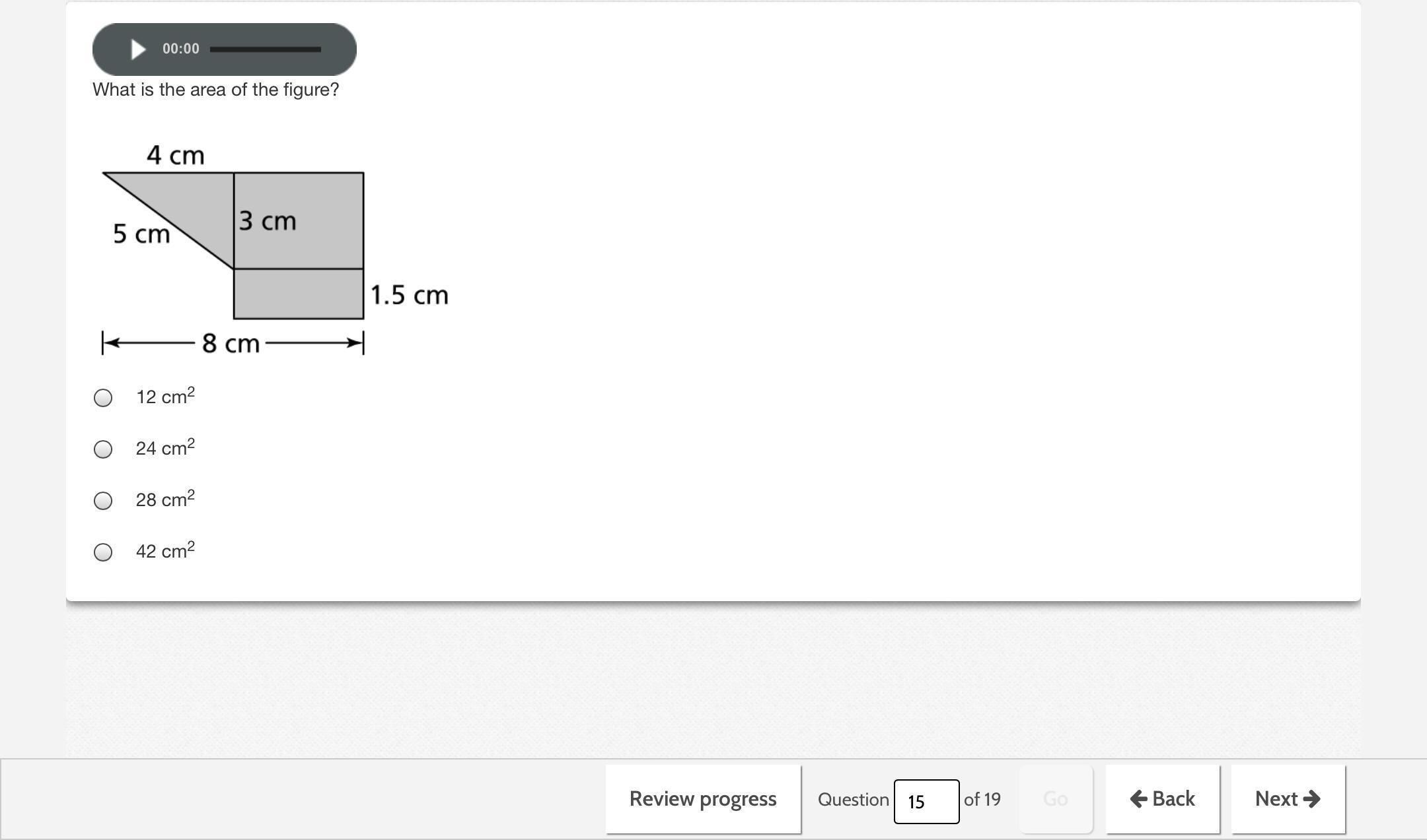 Another rectangle with a width of 1.5 and a length of 4 ( once again found by subtracting the total length of the composite figure by the triangles length 8-4=4 so the length of the rectangles are 4 cm )