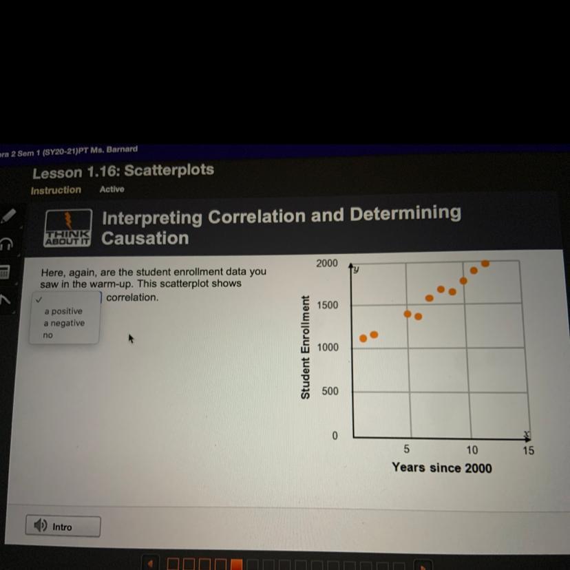 The correlation is positive. As the X goes up the Y also goes up. Negative would be one variable rises while another falls.