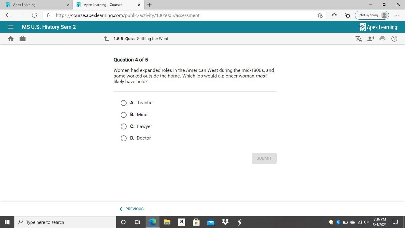 I looked it up in the textbook and took the test and chose D and i got it right.