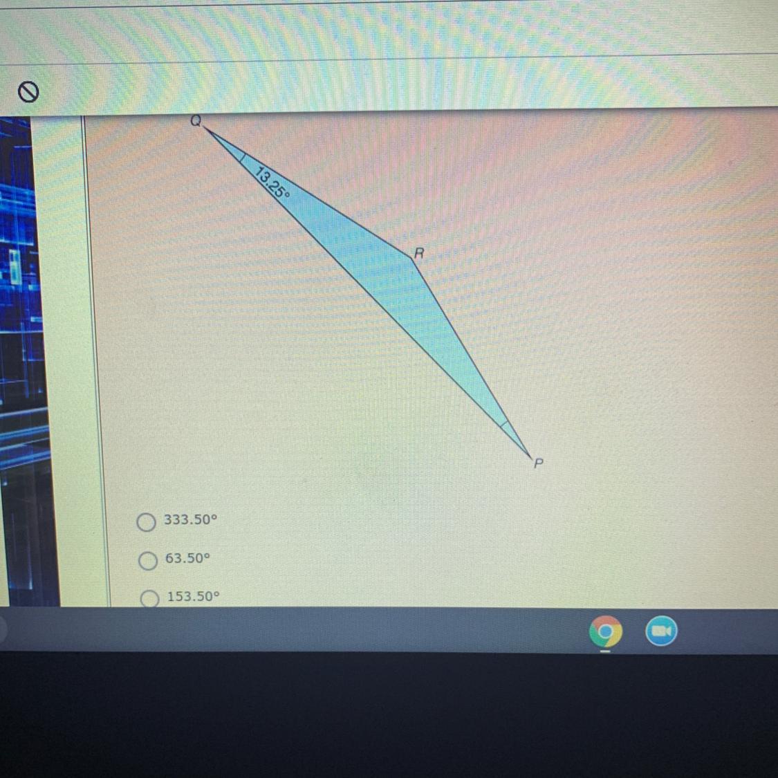 QA is tangent to circle P, so angle PAQ is a right angle. The sum of the measuers of the interior angles of any triangle is 180 degrees, so