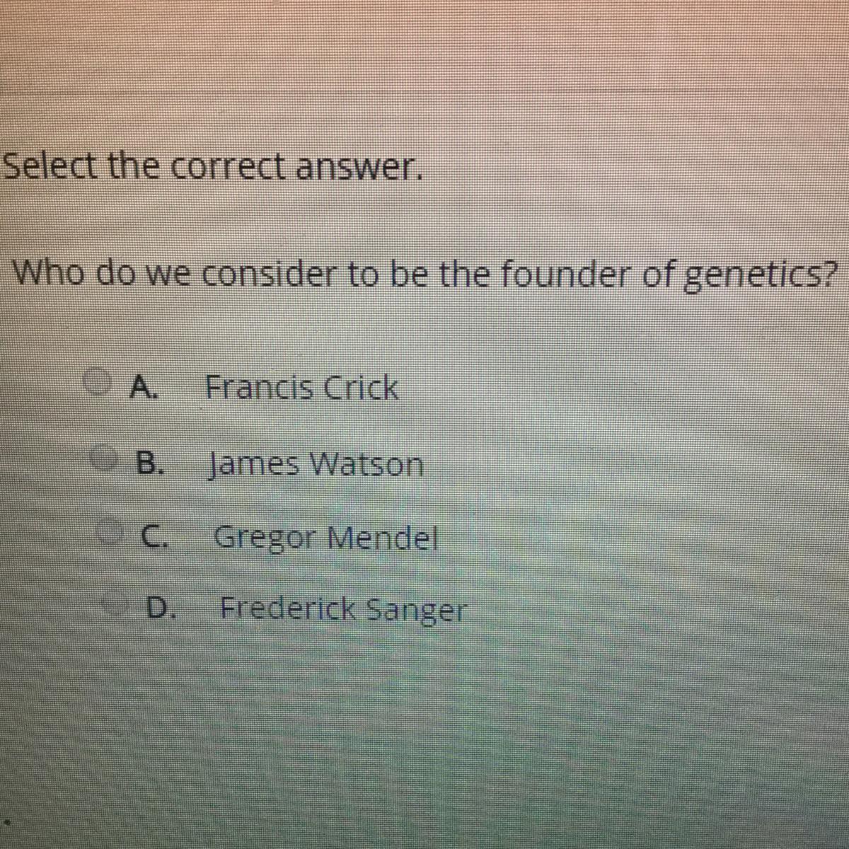 Select the correct answer. Who do we consider to be the founder of genetics?