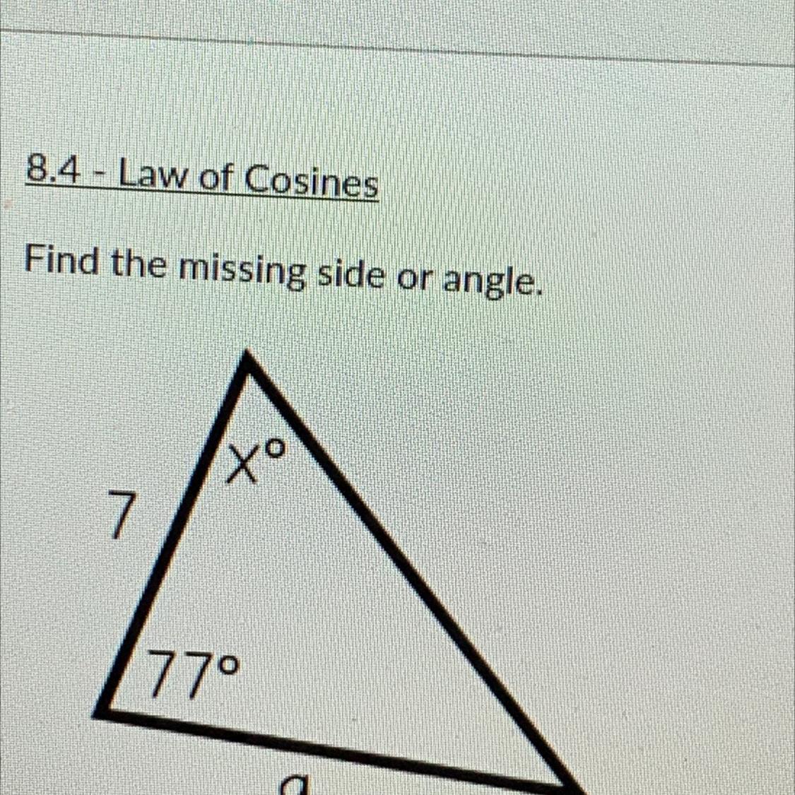 Plug in those, solve, and then you got the missing side.