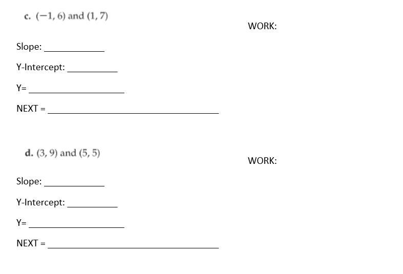slope: -2, y-intercept: (0,15), y: 9 and 5