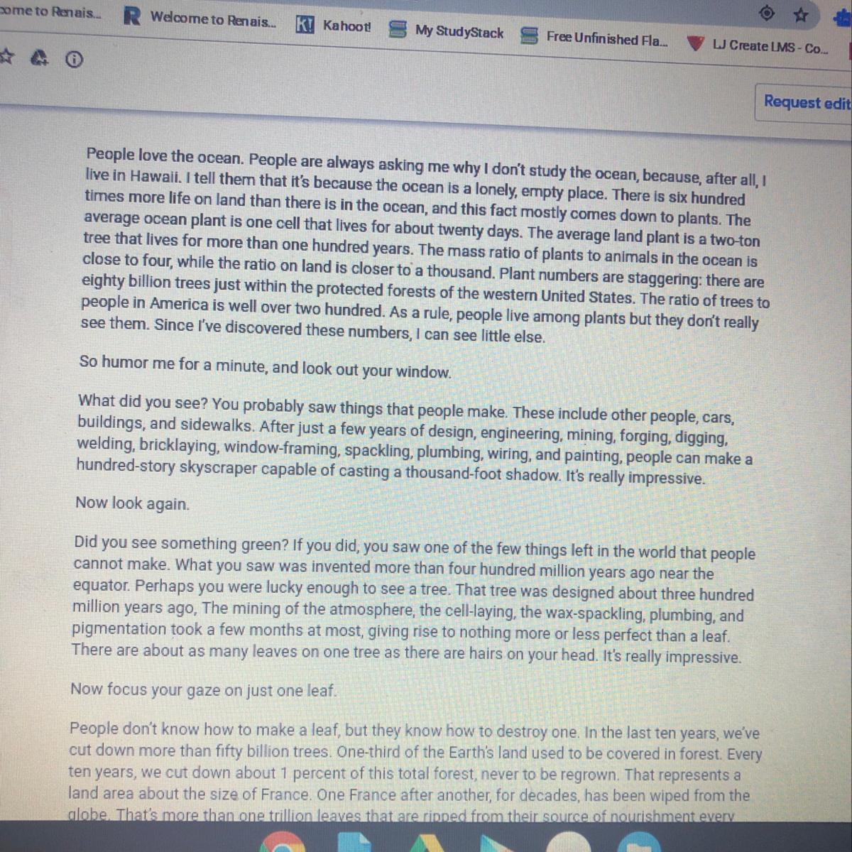 Jahren made some rhetorical statements in her prologue about the importance of trees and plants and why she refused calls by people to study the ocean since she lived in Hawaii.