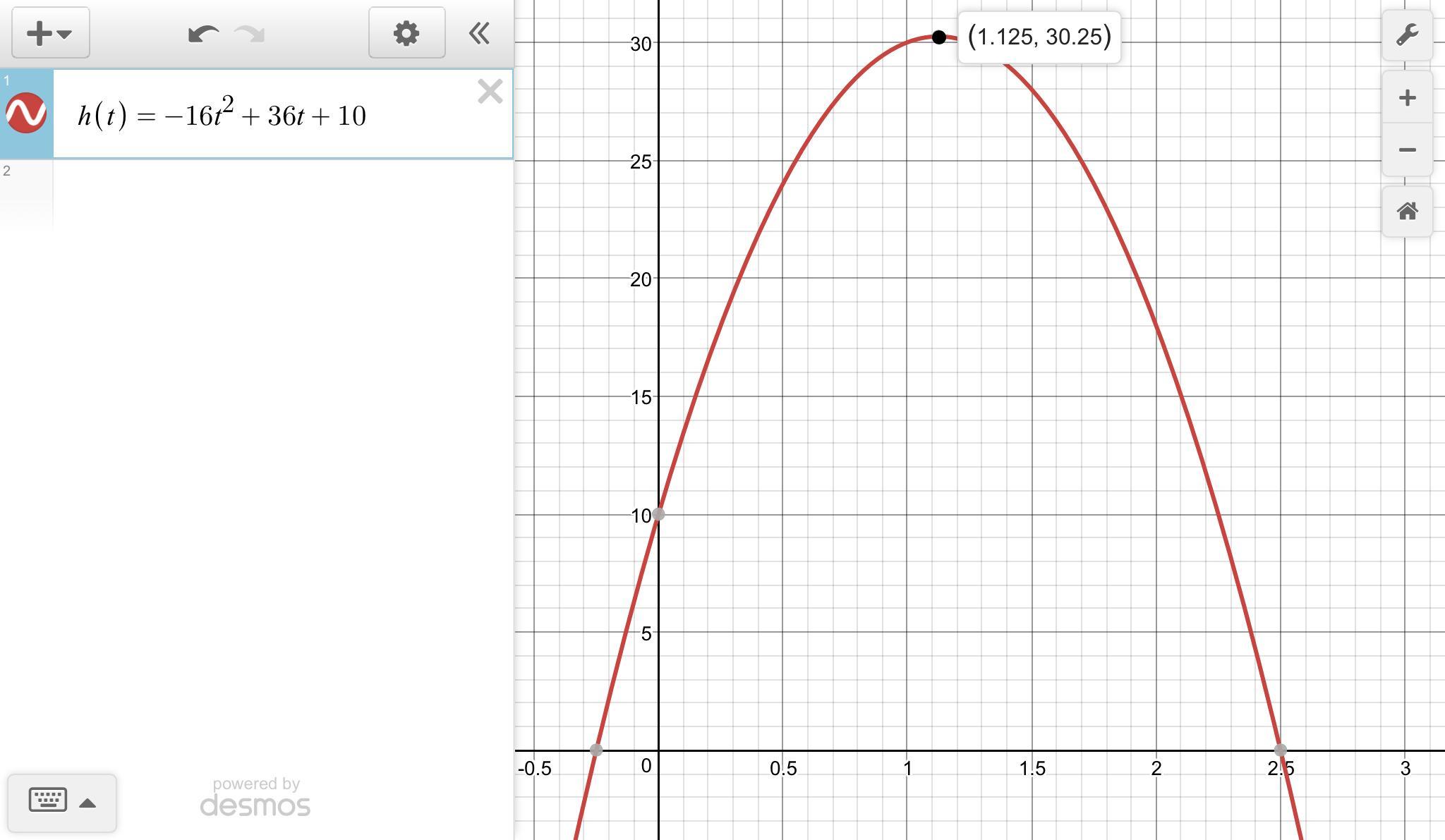 h = -16(t -9/8)² + 30 1/4