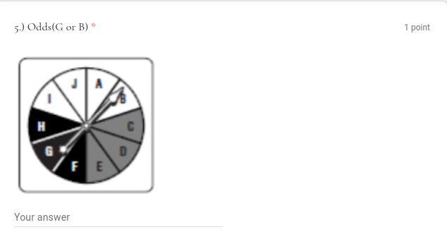 1) We have 10 letters, G and B are two letters, so the answer is 2/10, that can be simplify in 1/5