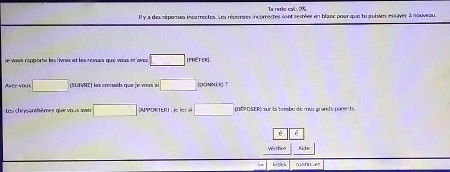 20) J'ai <u>apporté</u> ma plus belle robe à porter pour le spectacle