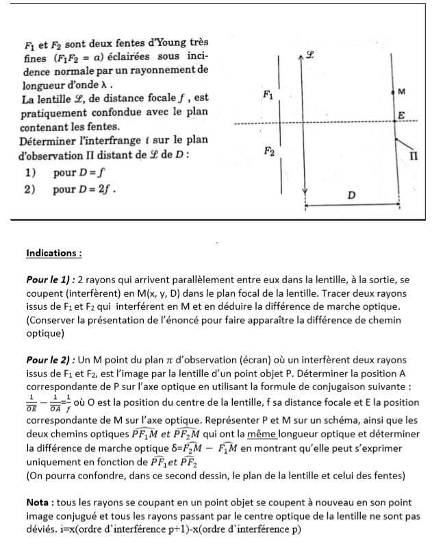 Determiner l'interfrange i sur le plan d'observation π distant de L de D: