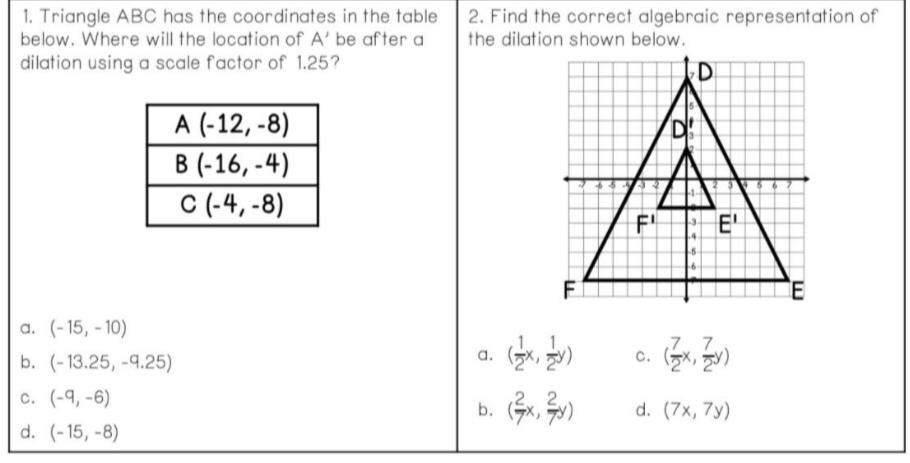 A(-12, -8) → A'[(-12 × 1.25), (-8 × 1.25)]