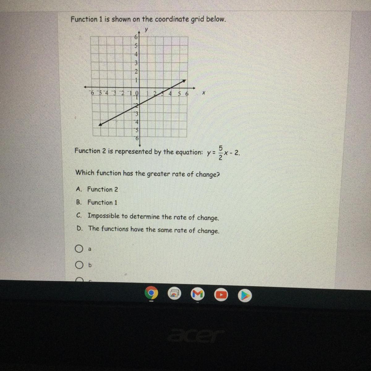 Function 2 has the greater rate of change.