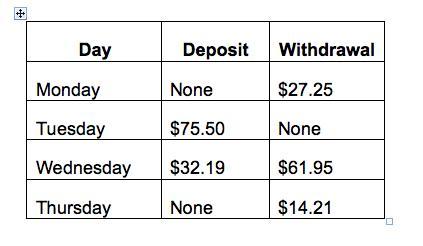 We have the fact that Raj starts with $225 dollars in his checking account on Monday, throughout the week, he deposited and withdrawaled money. All we must do is add the amount he deposited and subtract the amount he withdrawals.