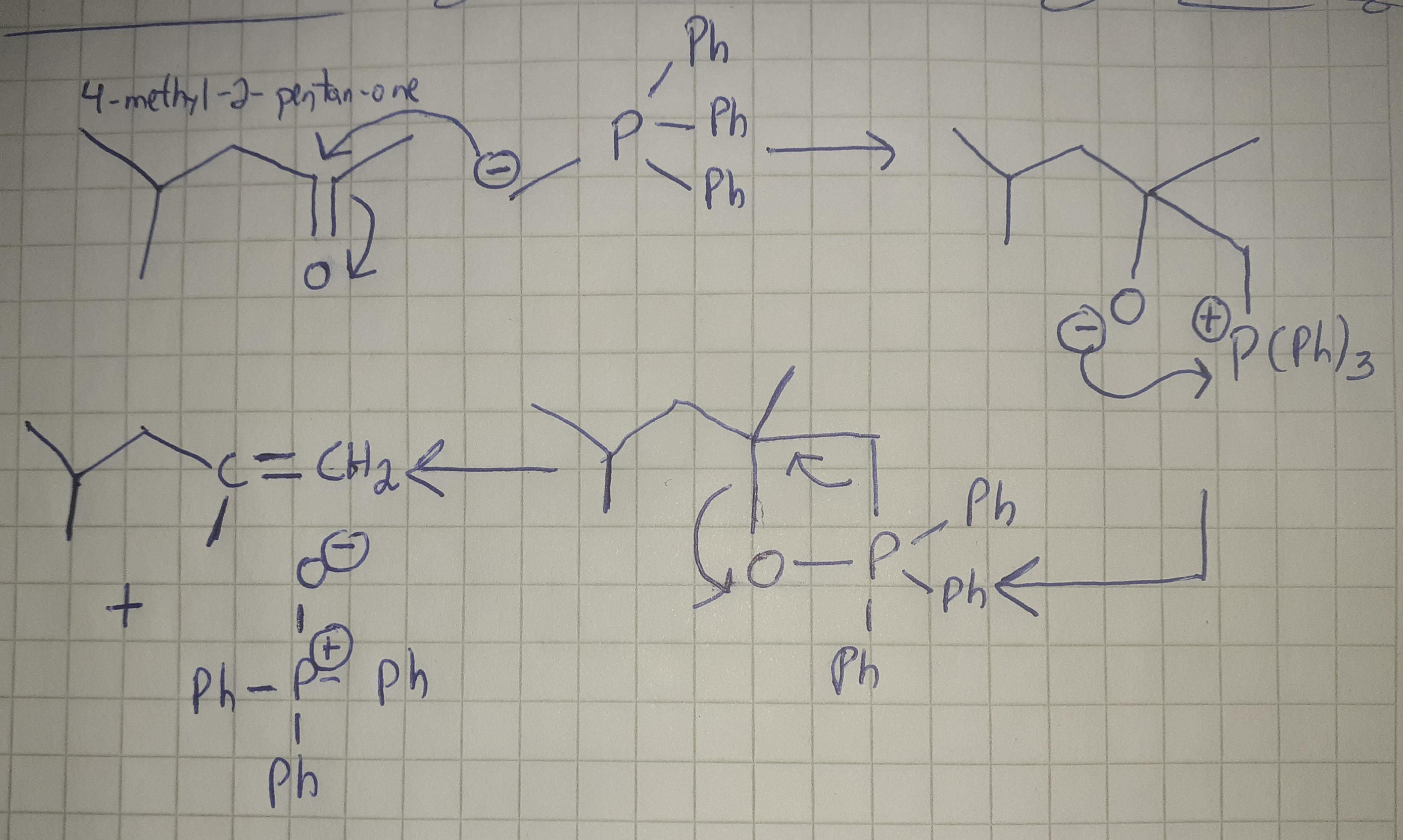The first step involves, a nucleophilic attack from the triphenylphosphine to the carbonyl of the ketone.