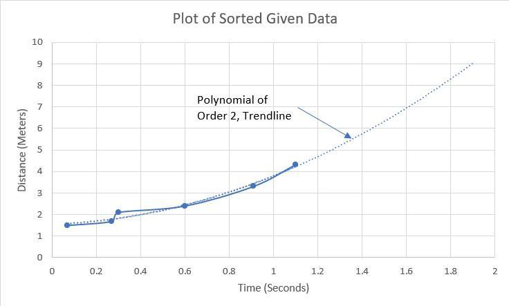 The given parameters of the motion of Kathy are expressed in a tabular form after sorting in increasing order using Microsoft Excel, as follows, as follows;