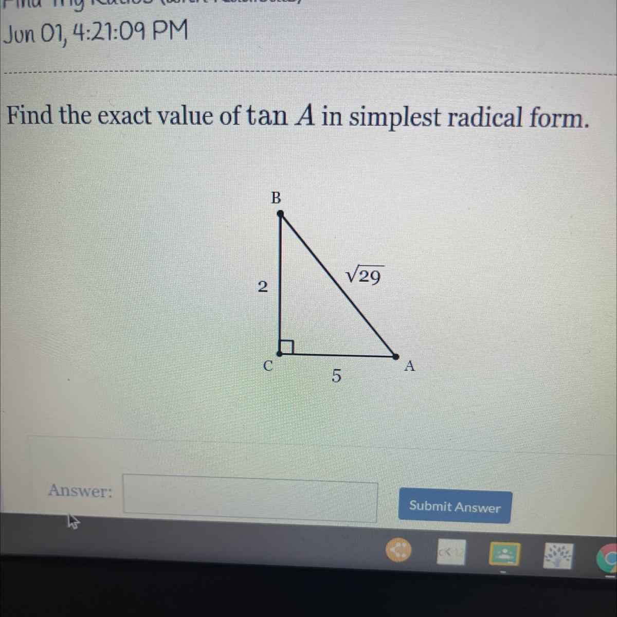 To determine tan m∠A, we would apply the tangent trigonometric ratio.