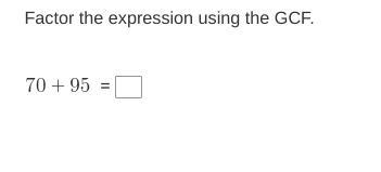 To factor the expression, 70 + 95, using the GCF, take the following steps: