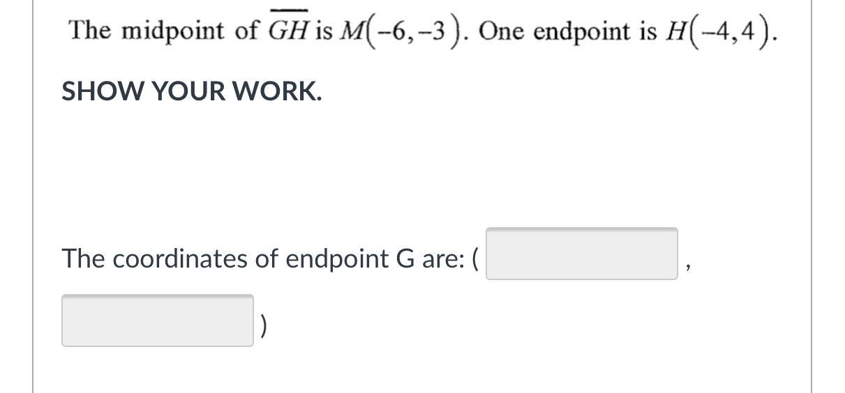 Find the Slope from the two points given. You should get a slope of 2/7. You should be able to get the other endpoint after you have found the slope. And if you haven't seen the slope formula before, it is: y2 - y1 / x2 - x1