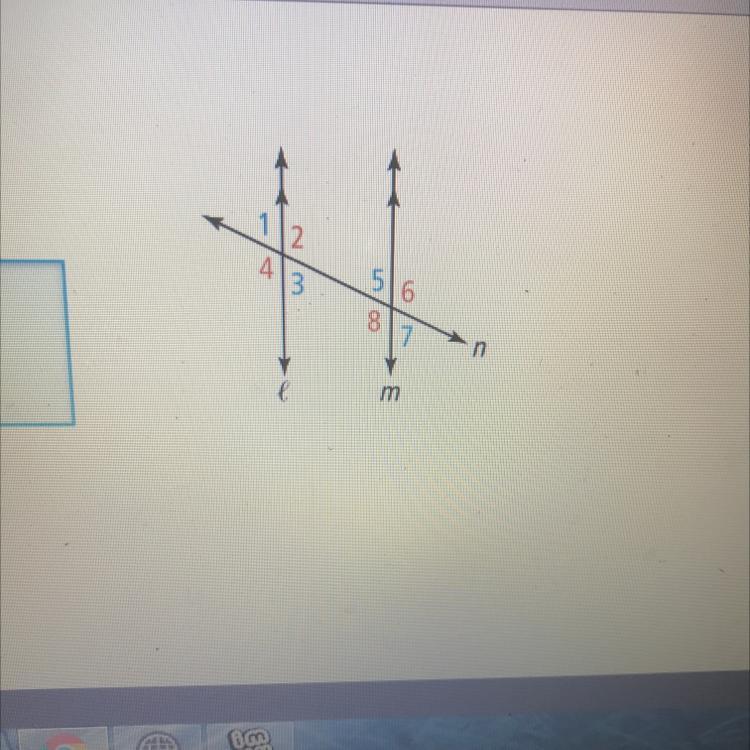 Lines l and m are the parallel lines and line n is a transversal intersecting parallel lines.