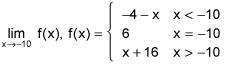 The left hand limit function is the corresponding function at when x<-10. The function is f(x) = -4-x