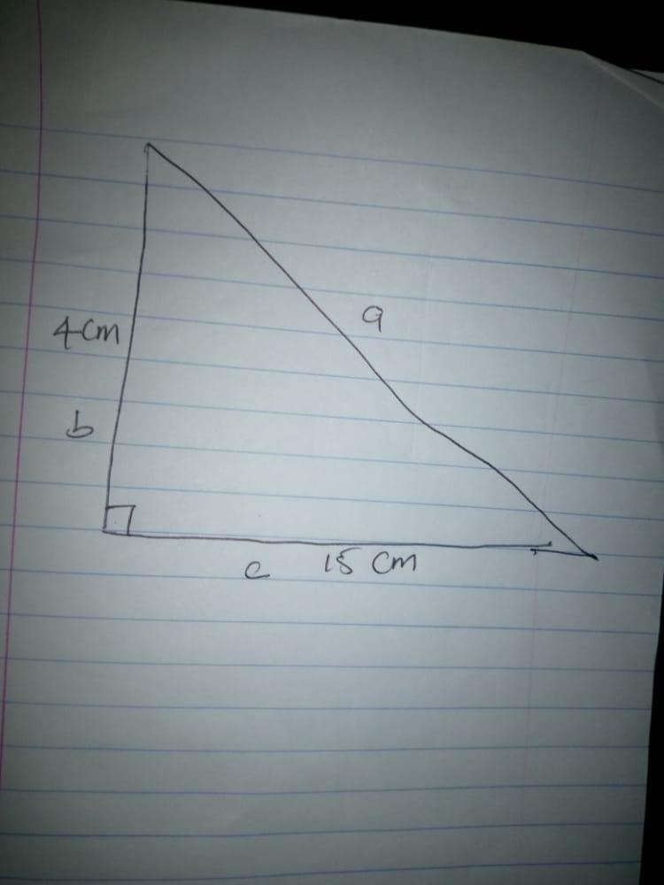 Question: Find the perimeter of the right triangle. If necessary, round to the nearest tenth. 4 cm 15 cm a. 15.5 cm