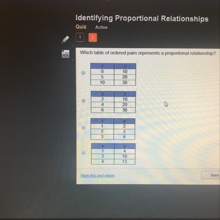 Therefore, the right table is the second one, it presents a proportional relationship.