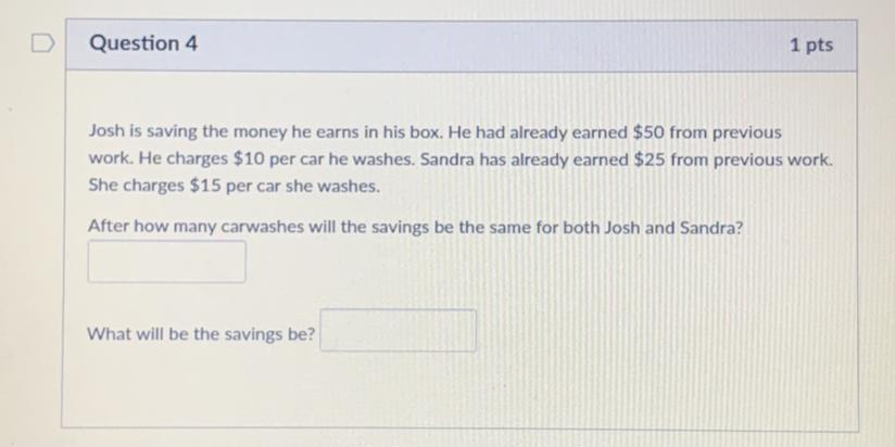 5 carwashes, Josh: $ 100 savings, Sandra: $100 savings