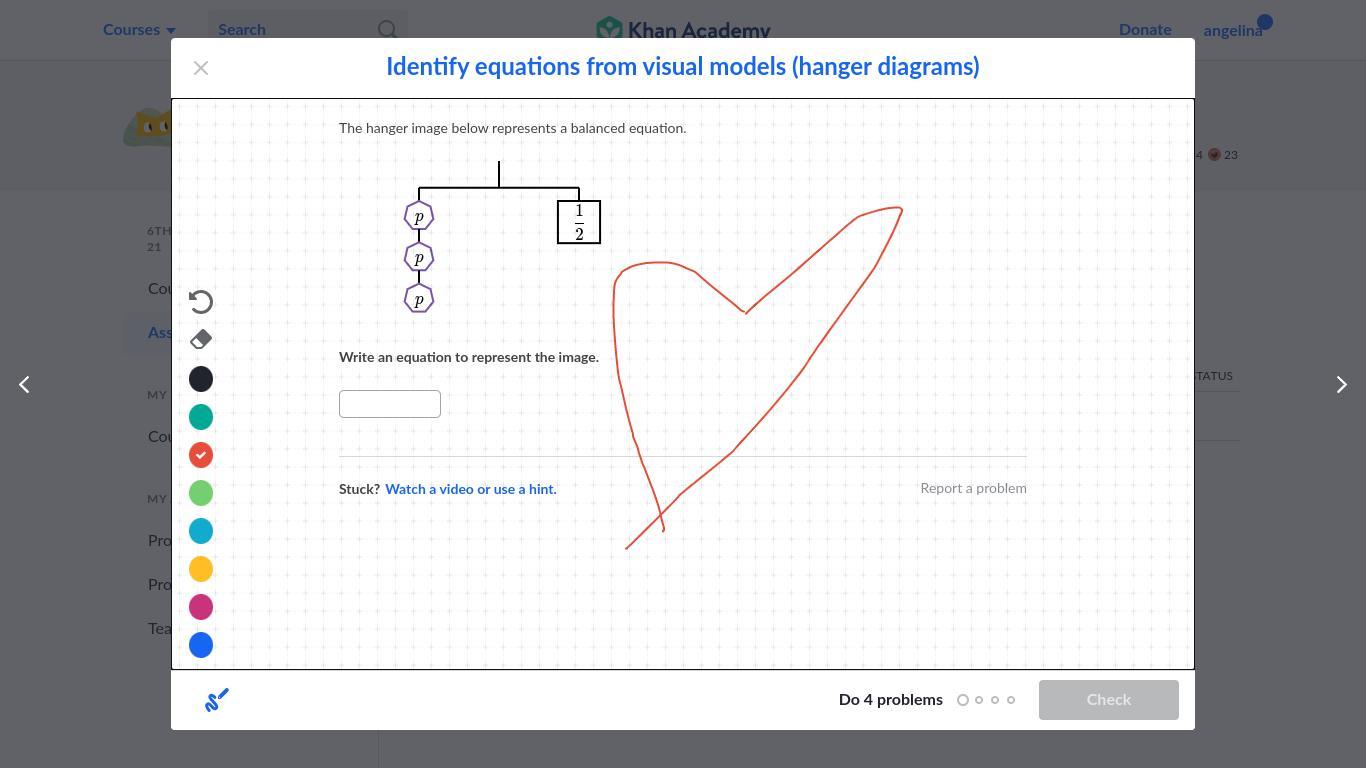 4x - 2(x - 2) = - 4 + 5x - 13 ← distribute left side and simplify