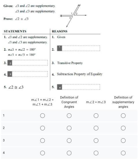 2. m∠1 + m∠2 = m∠1 + m∠3