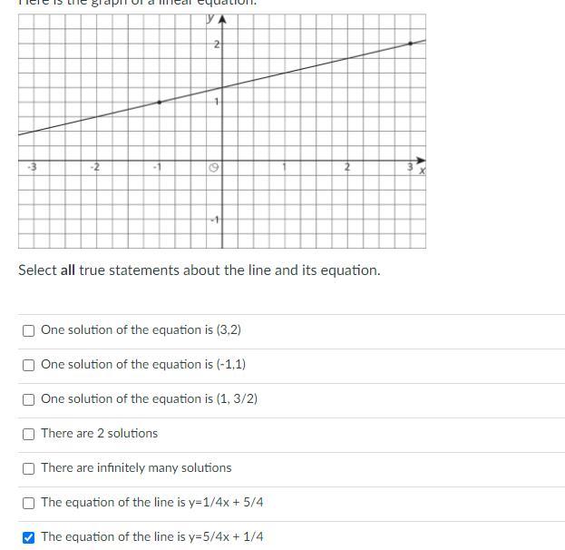 The equation of the line is y = 1/4x + 5/4