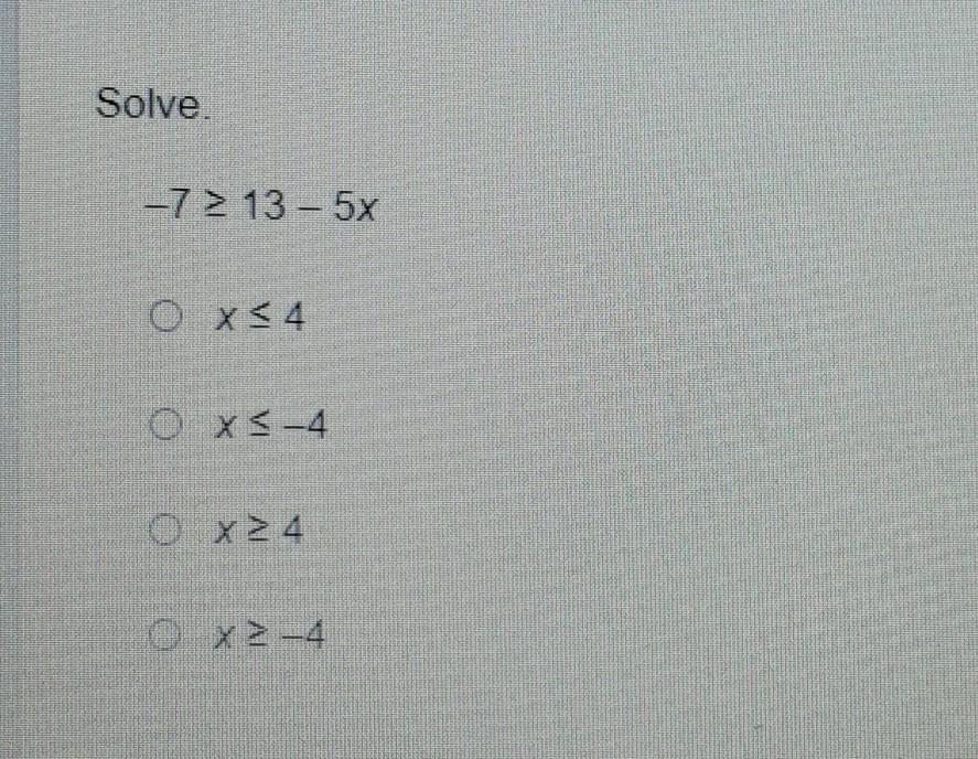 -7 <u>></u> 13 - 5X