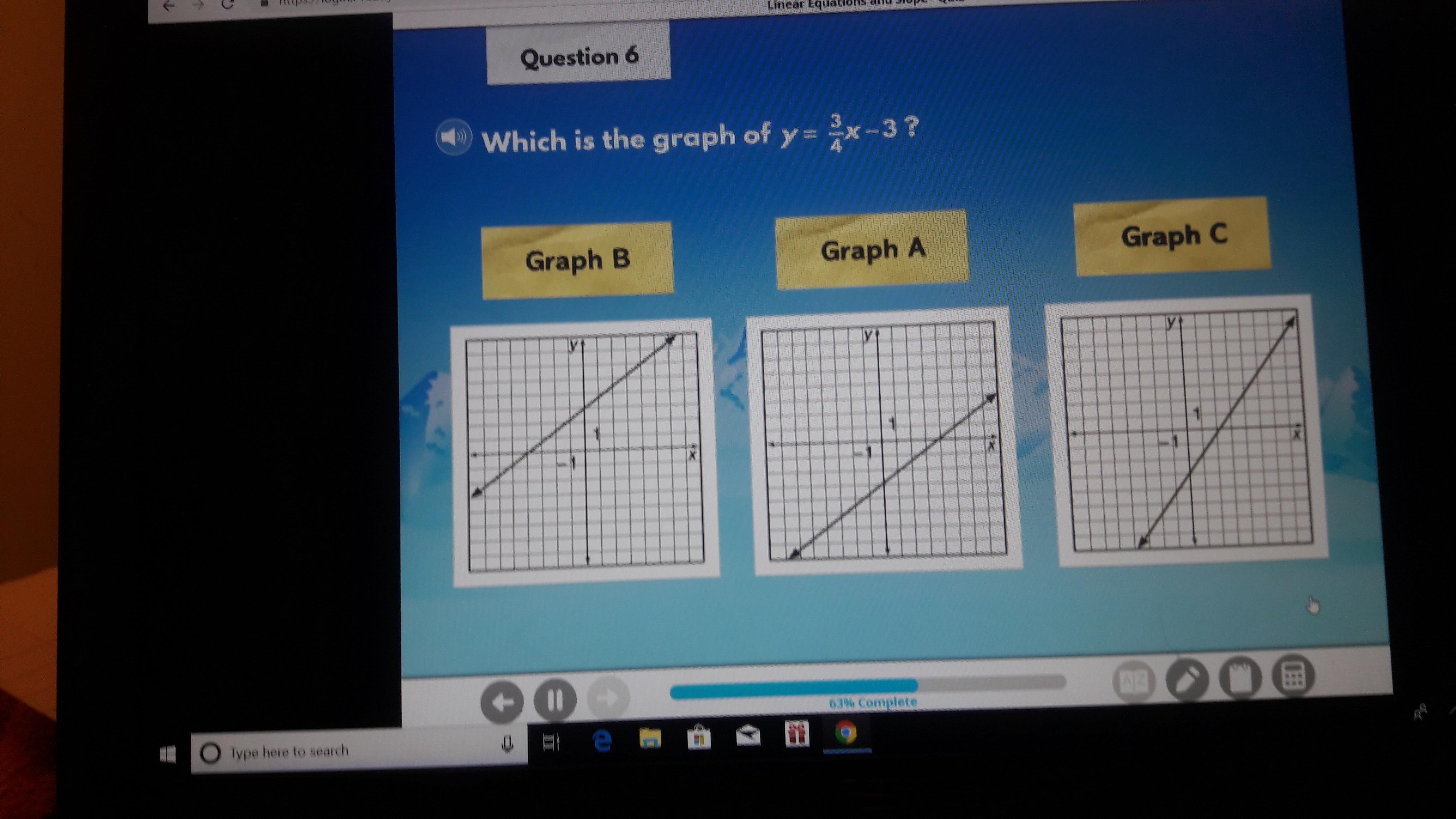 Graphs A, C, and D are all linear, straight lines. B, however, is a curved line, which means there is an exponent involved.