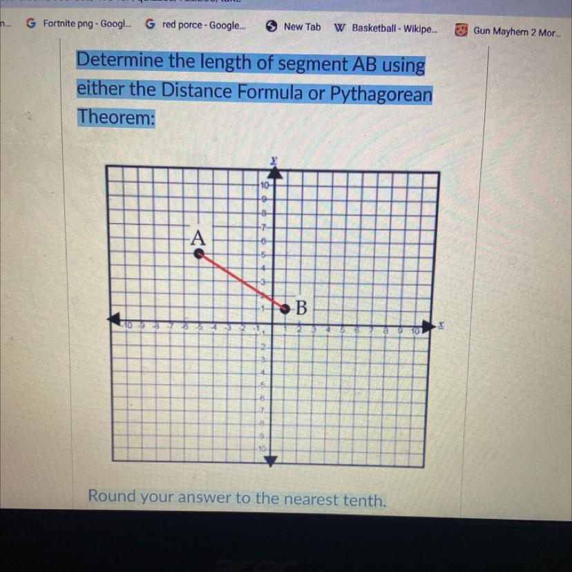 The problem statement tells you to use the distance formula to find the distance between points A and B. In order to do that, you need to read their coordinates from the graph. You find A(-5, 5) and B(1, 1).