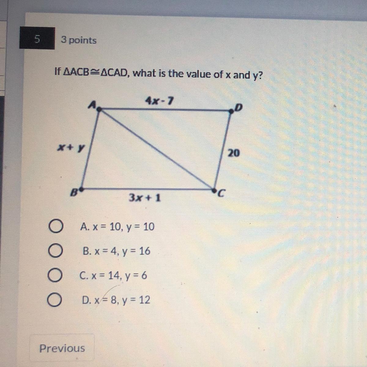The first step we need to take to find the answer is to find the value of y.