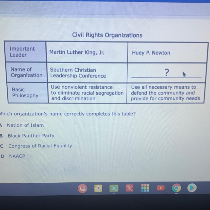 Black Panther Party was an organized Afro-descendant community that existed in the United States between 1966 and 1982, this community was based on a nationalist ideology that aimed to act by all means against police brutality against the black community and promote actions to improve the living conditions of the same. Additionally, Huey Percy Newton was a political and ideological leader of the Black Panthers group being one of its founders. So the correct answer is B. Black Panther Party.