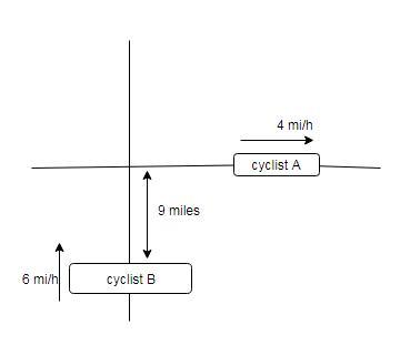 At noon cyclist B is 9 mi away