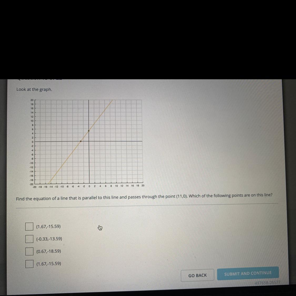 Since, line passing through (11, 0) is parallel to the line given in the graph,