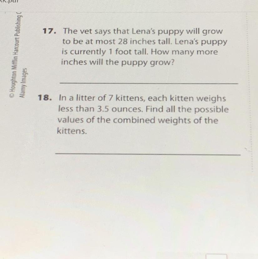 17. The puppy will grow 16 in - ( 1 foot = 12in and 28-12=16)