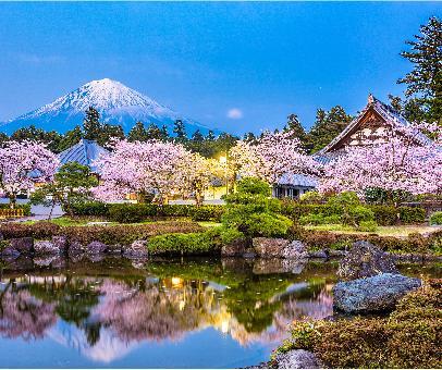 its C It shows buildings being in harmony with the environment.