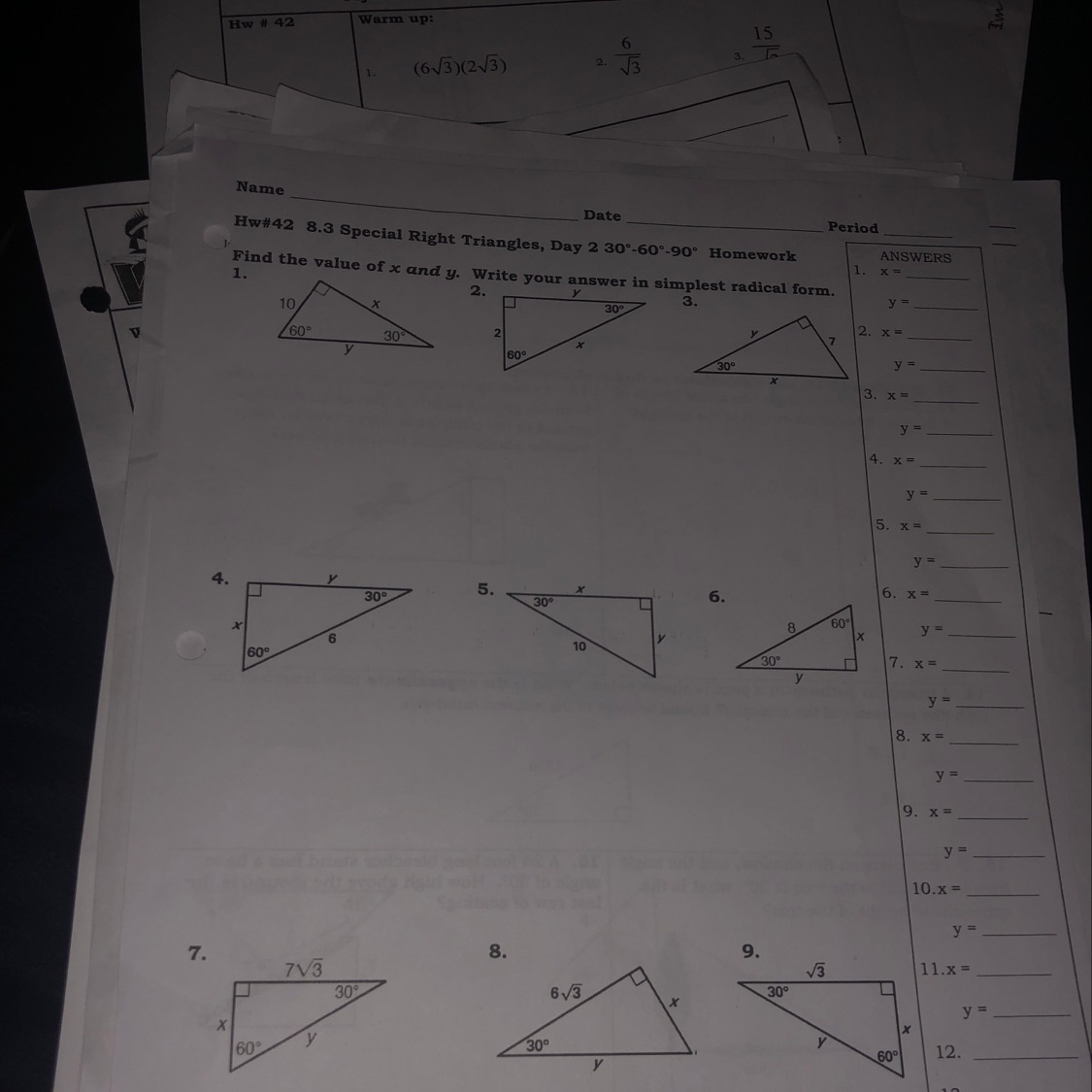 ∴ x = 4 and y = 4√3.