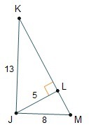 We can see from our diagram that triangle JKM is divided into right triangles JLM and JLK.